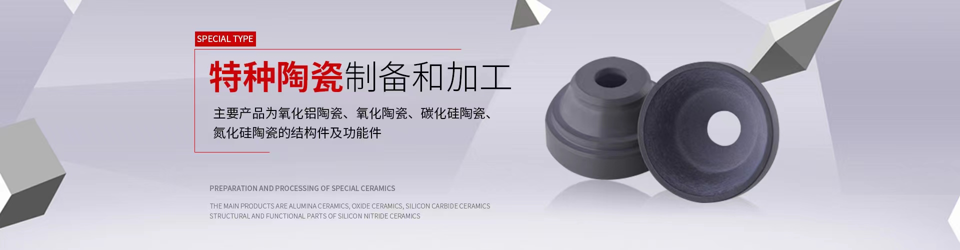 主要產品為氧化鋁陶瓷、氧化鋯陶瓷、碳化硅陶瓷、氮化硅陶瓷的結構件及功能件
